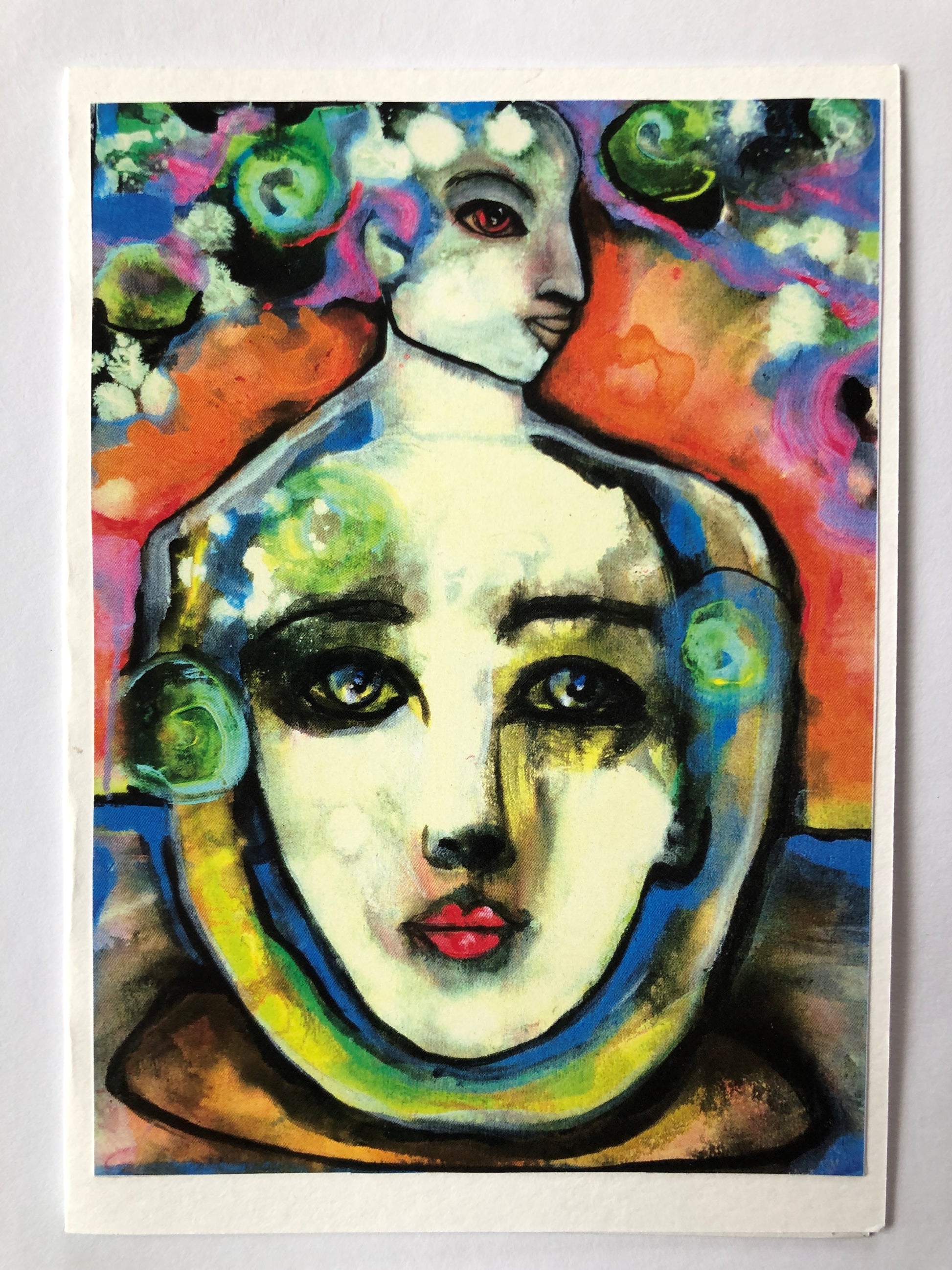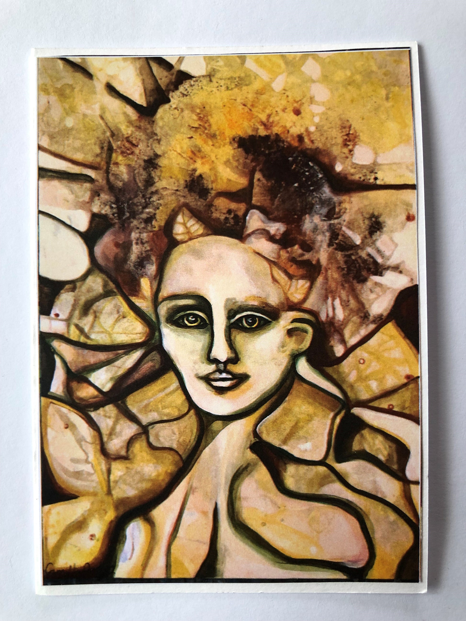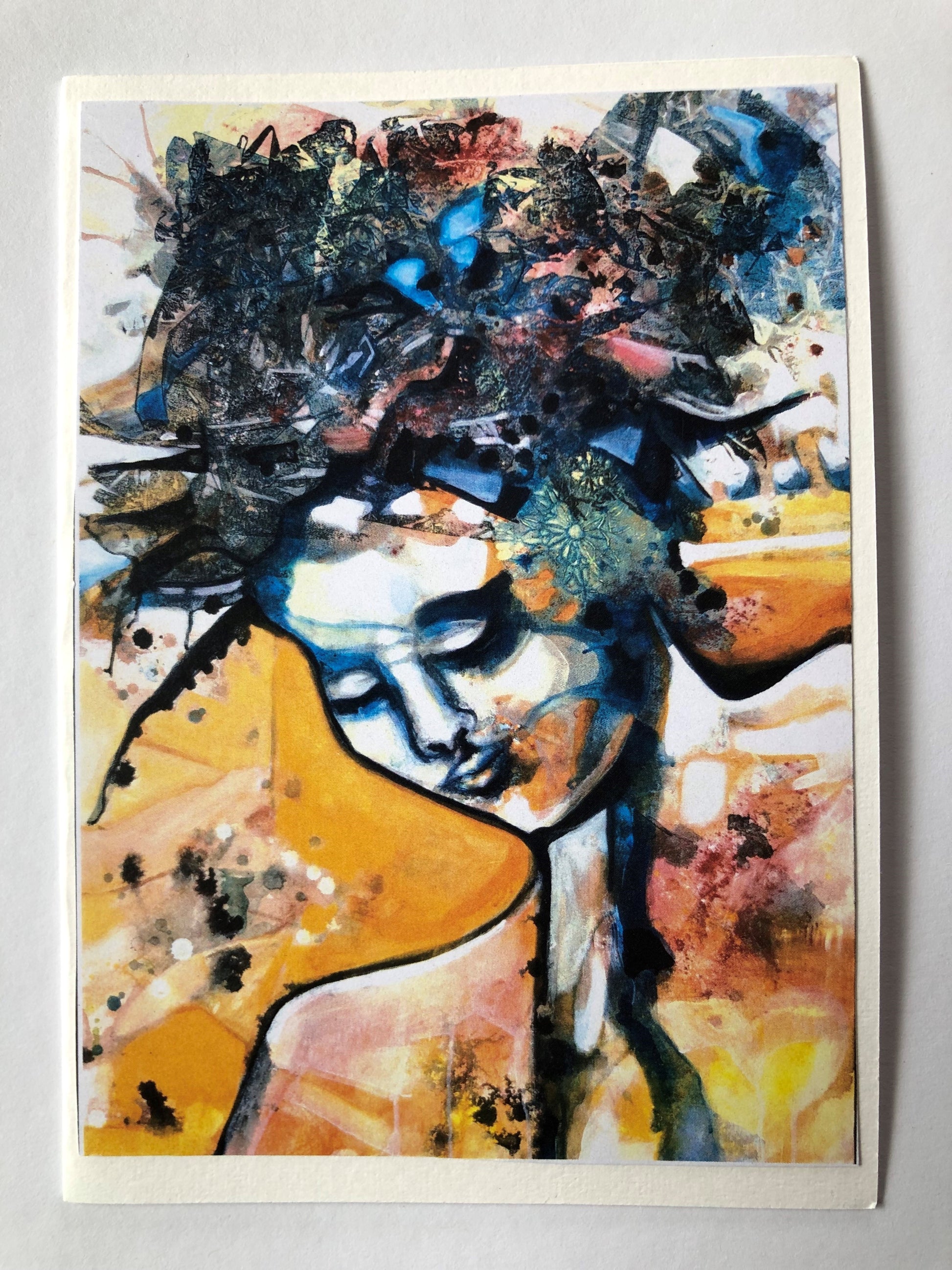 Kortpakke nr 1 består av 5 motiver i varme farger- med malerier jeg har laget tidligere som jeg er glad i og vil dele. Bildene er trykket på god halvmatt kartong. Jeg har limt alle trykkene på tegnepapir av typen fabriano disegno drawing papir 200g/m2. Håndgjort og velgjort med kjærlighet.